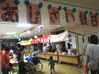 いつもは外でやる祭りですが、今年は天候不良のため建物内で行われました。