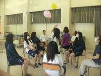 その後はレクリエーション実習として、実際に施設で行われているものの中から風船バレーを教えて頂きました。