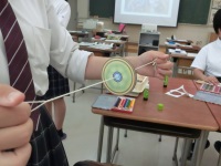今日は社会福祉基礎の授業の「子ども家庭福祉」の単元で、男性保育士の方を招いていろいろお話していただきました。始めに保育園の概要をお話いただいたあと、実際に保育園で使っているゲームを紹介していただいて、生徒も実際に遊んでみました。また幼児が制作するぶんぶんゴマも実際に作らせてもらい、童心に返ったようでとても楽しんでいました。