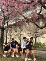 桜も咲いていたので、外を走った後に写真を撮りました。新2年生と新3年生です。