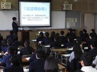 6月10日(木)の6時間目に、ジョブカフェ石川より森田浩様にお越しいただき、就職希望者41名対象に「面接対策講座」を行いました。面接時の立ち居振る舞いの実演指導や、自己アピール発見ワークを行いました。来週より始まる校内模擬面接に生かしてくれることと期待しています。
