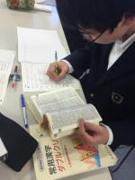 2月2日は、『あじさい』の時間を利用して、「適性テスト」をもとにし、「志望理由を書く準備をしよう」というテーマでリクルートの山本一輝さんに講演会をしていただきました。自己PRができるようになるため、自分を知る材料を集めるペアワークなどをしました。みんなとても積極的に参加していました。山本さんからは①整列が早い②あいさつができる③受講する基盤ができている、という高い評価をいただきました。