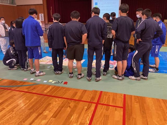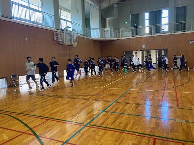本日1時間以上に渡り、体育館で部活動合同トレーニングが行われました。ゲーム感覚でトレーニングに励み、真剣な中にも笑顔がたくさん見られ、生徒達はとても楽しそうでした。新田先生の大きな声に負けじと体育館には生徒達の元気な声が響きました。最後には職員と約50人の生徒で校歌を合唱し、とても一体感を感じることができました。