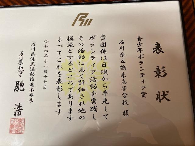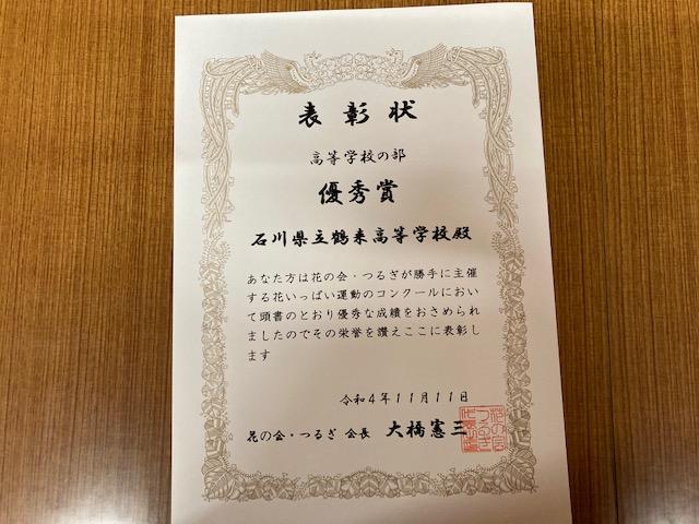 更にこの日から鶴来美術展がクレインの2階で始まり、本校生徒の入賞作が展示されました。表彰式にも参加してくれました。