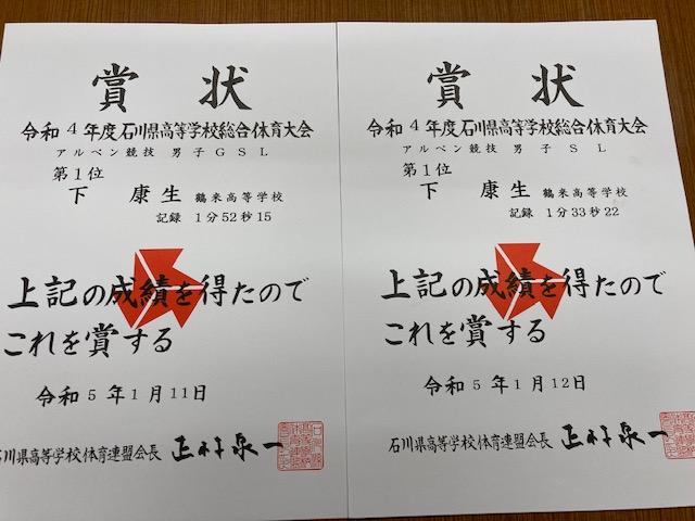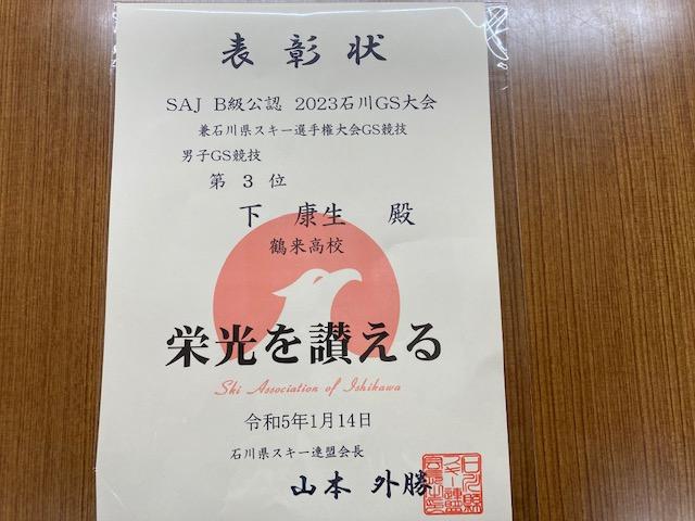 本校スキー部2年生の下康生君が、2023全日本ジュニアスキー選手権大会スーパー大回転で6位入賞を果たしました。また、同じ2年生の北川愛梨さんが北海道スキー選手権大会スパー大回転で3位入賞を果たしました。本校は山口連太君だけでないことを証明してくれました。