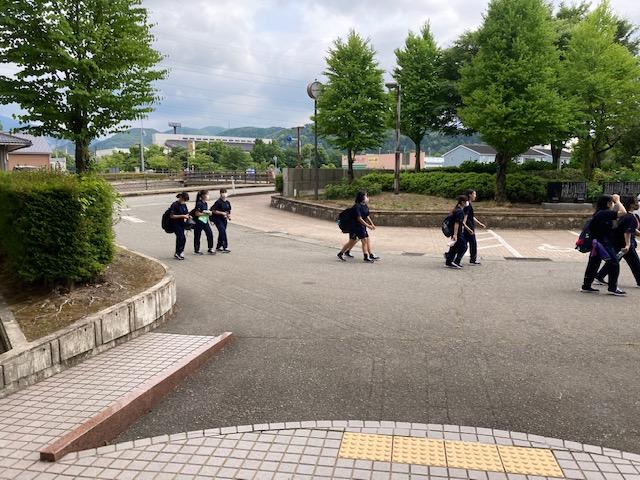 本日2限目地歴公民科探究の授業で、「子育てをしやすい街にするには」「雪や自然災害への対策は」「観光客を増やすためには / 古い町並みを守って行くには」などのテーマで11の班に分かれクロムブックを使い、第一体育館でグループ学習を行っていました。生徒達はとても生き生きとしていて楽しそうでした。