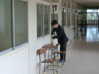 今日から2学期が始まりました。校内清掃後、各クラスでは新しく着任した英語教諭と司書の職員の2名の新任式と始業式が放送で行われました。