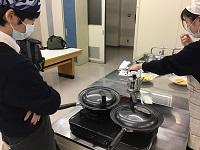 1年生は初めての調理実習室に右往左往しましたが、先輩たちと協力してチーズハットクとチジミを何とか完成させました。