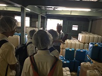 ▲社長さんから酢のでき方を教わりました ▲瓶詰の機械を見せてもらいました ▲顧客に応じてレシピが異なるそうです