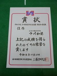 中川 和希 石川県 鶴来高 3年 特選 (中央で表彰)