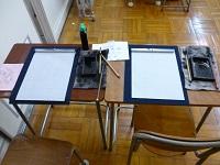 受付は、書道部と華道部が交代で