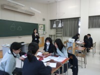 今日は「介護福祉基礎」の授業で金城大学の柴田紀子教授をお招きし、地域福祉福祉入門とコミュニケーション技術について講義していただきました。前半は認知症を取り巻く地域福祉についてのお話で、生徒も初めて知る内容もあり、真剣に話に聴き入っていました。後半はコミュニケーションに関するゲーム形式の演習を行い、2チームに分かれて勝負したこともあって非常に盛り上がっていました。