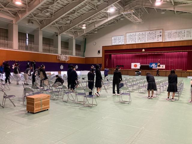 いよいよ月曜日に入学式が行われます。会場準備にスポーツ科学コースの生徒を中心とした部活動の生徒が手伝ってくれました。準備終了後には当日披露する伝統歌歌唱の練習を行いました。素晴らしい生徒達です。