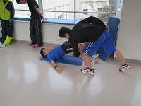 昨日の放課後、陸上部と弓道部で合同の体幹トレーニングを行いました。陸上部が日ごろから行っている体幹トレーニング(軸作り)を弓道部に伝授してもらい、今後のトレーニングに取り入れようというものです。普段あまり筋力トレーニングを行わない弓道部ですが、発射の土台を安定させ、正しい姿勢で思い通りに体を使うためには必要なトレーニングです。