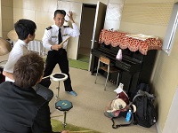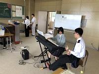 舞鶴音楽隊のみなさまに来ていただき、音楽指導をしていただきました。