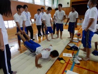 実技では、スポーツは体幹が大切ということから、体幹トレーニングを指導していただきました。生徒と共に体を動かし、汗を流しながら熱心に指導して下さる姿は、格好良く、年齢を感じさせませんでした。