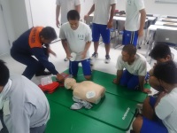スポーツ科学コースの2年生が普通救命講習Ⅱを受講しました。昨年の内容をしっかりと覚えていて、署員の方も ほめてくださるくらいスムーズに学習を進めることができました。今日は『救命の連鎖』について、私たちに出来ることを熱心に教えて下さいました。来年の上級救命法受講まで忘れずにいたいと思いますし、いざというときには必ず役立てたいと思います。鶴来消防署のみなさん、ありがとうございました。