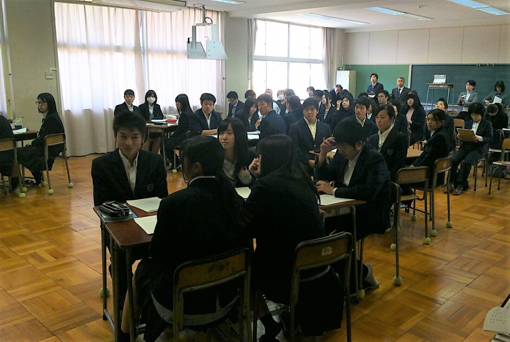 10月31日(火)午後、「石川県高等学校教育研究会国語部会秋の教育研究会」が鶴来高校を会場として開催されました。県下の国語の先生方60名以上が来校され、31Hの現代文Bの授業を参観されました。生徒達は緊張した面持ちでしたが、グループ別に自分たちの考えたことをしっかり発表していました。