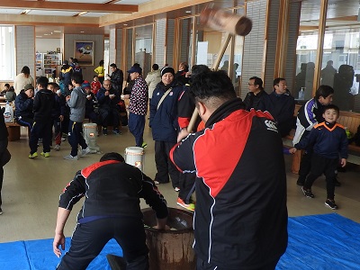 タグラグビーの後は、餅つきをしたり、皆で豚汁を食べたりして交流しました。
