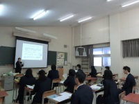 今日は介護福祉基礎の授業で金城大学の猪狩もとみ先生を招いてソックスエイドという靴下を履くための自助具を作りました。リサイクル品(使用済みファイルの表紙)やひもを用いて簡単に作れ、楽な力で靴下を履くことができたことに感動している生徒もいました。他にも理学療法士と作業療法士の違いなども説明していただき、今までなんとなく教科書でさらった知識が体験を伴って身についていく様子が伺えました。