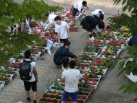 今日は朝8時から白山市フラワーデーの一環として、保護者の方と運動部有志で学校前の花壇に花を植えました。PTA会長や学校長の挨拶の後、一斉に花を運び、手際よく50cm間隔で植えていきました。たくさんの方に協力していただいたおかげで、30分ほどで作業を終えることができました。朝早くから協力してくださった保護者の皆様、本当にありがとうございました。