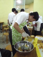 2日目の午前中は「沖縄体験ニライカナイ」という場所で、ムーチーという沖縄のお菓子やパインジャムを作っています。生徒たちは楽しそうに、かつ真剣に沖縄の文化に触れています。午後からはマリンスポーツを体験する予定です。
