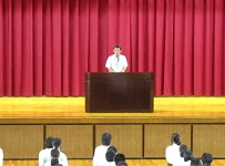 今日は10月に入って最初の授業日で、朝、校長訓話が行われました。