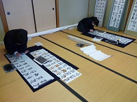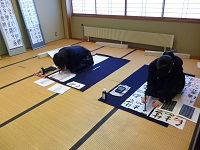 先ずは,3年生の卒業アルバム写真を書道室内和室練習場で