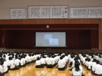 今日のLHは、白山市警察署から講師の方を迎え、薬物乱用教室を行いました。はじめにDVDで薬物の危険性を学んだあと、警察の方からパワーポイントによるわかりやすい説明をしていただきました。石川県の情勢も交えたお話だったので、生徒も身近なこととして、その恐ろしさを実感できたように思います。最後の質問タイムでは、薬物乱用のみならず、警察官を志望する生徒も紹介しながら、警察官のやりがいについて熱く語ってくださいました。