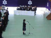 本日午後から平成31年度入学式が行われました。天気にも恵まれ、校舎の周りには桜の花が咲き誇り、入学式にふさわしい日となりました。学校長の式辞の後、山田憲昭白山市長や酒井一朗振興会会長からも祝辞を頂き、新入生代表の山田さんが新入生宣誓を行いました。最後に毎年恒例の野球部、柔道部、ラグビー部、ソフトボール部による校歌・伝統歌紹介で歓迎ムード一色に締めくくられました。