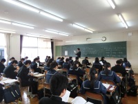 今日は石川県女性相談支援センターの職員の方を招いて、デートDVを中心としたドメスティックバイオレンスについてお話しいただきました。まだまだ男尊女卑がはびこる日本社会の現実や、お互いを認め合い尊重し合うことの大切さなどをわかりやすく紹介してくださいました。生徒の人権問題に対する正しい理解や認識も深まったと思います。