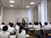 2月2日は、『あじさい』の時間を利用して、「適性テスト」をもとにし、「志望理由を書く準備をしよう」というテーマでリクルートの山本一輝さんに講演会をしていただきました。自己PRができるようになるため、自分を知る材料を集めるペアワークなどをしました。みんなとても積極的に参加していました。山本さんからは①整列が早い②あいさつができる③受講する基盤ができている、という高い評価をいただきました。