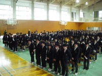 本日、3年生の登校日でした。1限目に学年集会を行った後、2限目には式歌練習に励みました。大変寒い体育館の中での練習でしたが、ほとんど私語もなく、立派な態度でどの曲もしっかりと歌ってくれました。1・2年生にもぜひ見てもらいたいくらいでした。特に女子の歌声が素晴らしいです。