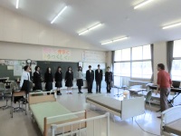 はじめに「津軽海峡冬景色」「なごり雪」「荒城の月」の3曲を披露した後、何人かの利用者の方にインタビューをしました。皆さんが「どの曲もよかった」と答えてくれて、部員たちもうれしそうでした。その後「涙そうそう」「カントリーロード」「君をのせて」を歌い、最後には利用者の方と一緒に「ふるさと」を歌いました。