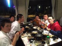 宿舎にて。夕飯は相変わらずのすごい量を食べていました...さすがです。