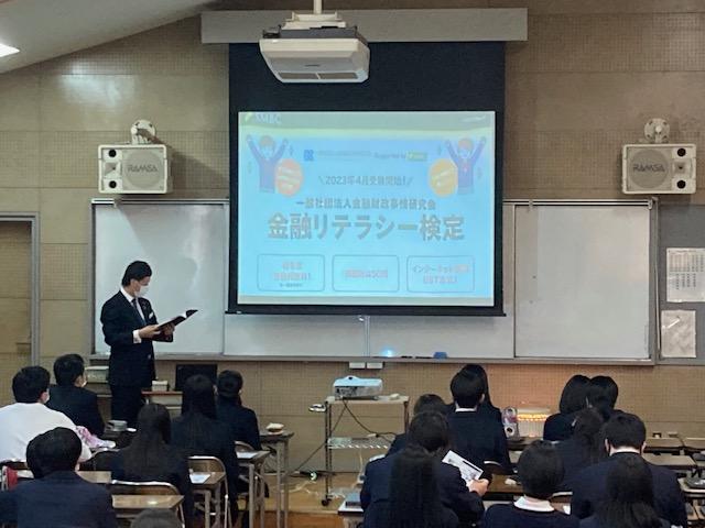 本校2年生を対象として7限目LHの時間に、SMBCコンシューマーファイナンス株式会社より3名の方に来ていただき、金融セミナーを開催しました。成年年齢引き下げに伴う様々なリスクについて、クイズ形式で楽しく学びました。