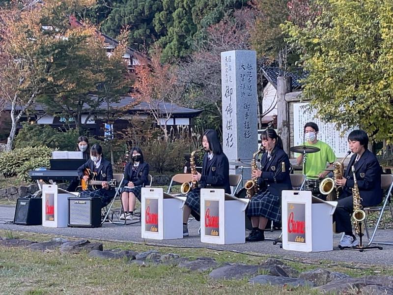10月30日(日)の鶴来公民館での演奏に引き続き、11月6日(日)は吉野工芸の里にて演奏させていただく機会があり、1・2年生5名と合唱部2年生1名の計6名で、アンサンブルや独唱・独奏を披露しました。