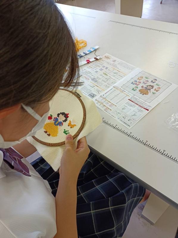 2年生がクロスステッチに挑戦中。やり始めるとハマります。