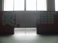 畳をめくるとつもりに積もったホコリが・・・・。いっぱい!!!日頃の感謝をこめて丁寧に掃除し、隣接する卓球場や体育館への入り口も掃除しました。