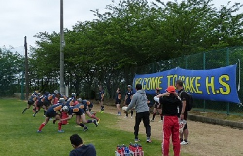 手取川歩行の翌日、金沢大学のグラウンドへ出向き、金沢大学ラグビー部と合同練習会を行いました。選手たちは前日の疲れをものともせず、果敢に大学生に向かっていきました。体格差のハンディを克服するいい練習になったのではないかと思います。金沢大学の関係者の皆様、本日は本当にありがとうございました。