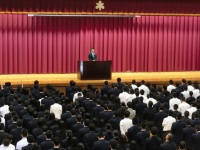 本日、5月の学校長訓話が行われました。1年生が入学以来、初めて全校生徒がそろった集会です。