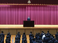 次に校長訓話がありました。自分がやっていることがこれでいいのか、何をすべきなのか、自分という原点に立ち帰り、自分自身を見つめ直してほしい、という内容で、この1年が、そしてこの3学期がみんなにとって、学校にとっていいものになるように、一緒に頑張っていこうと締めくくられました。