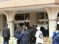 本日正午に先週の6、7日に行われた学力検査の合格発表が行われました。12時前から多くの受検生や保護者の方が生徒玄関に集まり、正午の発表とともに番号を確認して安堵する姿が見受けられました。あわせて行われた簡易開示にもたくさんの受検生が列を作っていました。