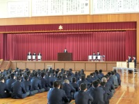 3学期最後の今日は、ロッカー整理や清掃の後、表彰伝達式と終業式、離任式が行われました。3学期期間中に入賞した合唱部、柔道部、スキー部の表彰の後、校長先生から今年度最後のお話がありました。離任式では、校長先生をはじめ、6人の先生方が退官、転出されることになり、最後のお言葉を頂きました。それぞれの胸に響く言葉もあったと思います。新学期に向けてなりたい自分になれるよう、頑張っていきましょう。