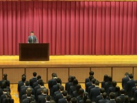 明日の卒業式を控え、前日の今日は同窓会入会式が行われました。始めに1,2年生も一緒に学生歌、応援歌を披露した後、同窓会長の酒井一朗様から入会許可を頂き、無事卒業生112名が同窓会に入会しました。今年から、本校12期生でもある、故・山岸勇元副知事の功績を称え設立された「山岸勇賞」の贈呈も行われ、鶴高生の模範となるような学校生活を送ったとして、32Hの三納さんが選ばれました。最後に31Hの伊藤くんが総代として新会員代表宣誓を行いました。