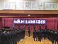 今日は7限目のLHの時間にインターハイに出場が決まったスキー部の壮行式がありました。校長先生からの激励の挨拶の後、柔道部の応援団による校歌、応援歌、三三七拍子、応援ソングの披露が行われました。選手代表挨拶ではアルペンとクロスカントリーからそれぞれ一人ずつ全国での上位を目指して戦ってくるという力強い挨拶がありました。ぜひ全国に鶴来高校の名を連ねてきてください。