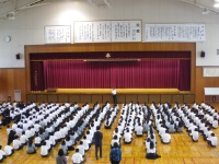 今日は、朝学習の時間に生徒指導課主催の全校集会が行われました。先週、修学旅行や遠足が終わり、今週は体育大会や文化教室など行事が続く中、今一度、授業規律などのルールをしっかりと守ろうという趣旨と、安易な遅刻欠席をしないような注意喚起です。