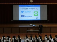 今日のロングホームは、県教育委員会と白山警察署から講師の方をお招きして、「非行防止・防犯教室」が行われました。非行の中でも特にネットトラブルに関する非行について、これまで以上に詳しい説明をしていただき、生徒も身近な問題としてとらえることができたと思います。防犯についても、非行と関連する話も多く、普段から元気よく挨拶をし、堂々としていることが防犯にもつながるということがよくわかりました。合間に護身術も教えていただき、嬉しそうに試す生徒たちでした。