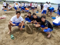 柴垣海岸で、「スポーツ科学」をテーマに、砂像作り体験を行いました。指導して下さった現地の先生も、元柔道家ということで、熱く、そしてきめ細かに指導して下さり、それぞれの班で、様々な思いを持ちながら、砂像を作成しました。当初、時間をもてあますのではないかと心配したが、時間を少しオーバーするほど熱中し、終了後の作品をお互いに見合い、認め合う姿が見られました。