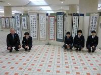 県内の書道部が17校集まり,一緒にパネルを運んだり